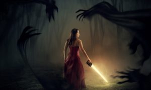 From the beginning the road was rough and rocky, but when it led her into the dark forest, all she could do was put one foot in front of the other because she was determined to finish this challenge. But when the trees began to make whispering sounds, she paused to listen. They were speaking words she could understand! Trees talking like humans? The whispers grew louder and stronger. Then hideous laughing covered the forest, followed by unbelievable words. She froze, then buried her head in her hands.